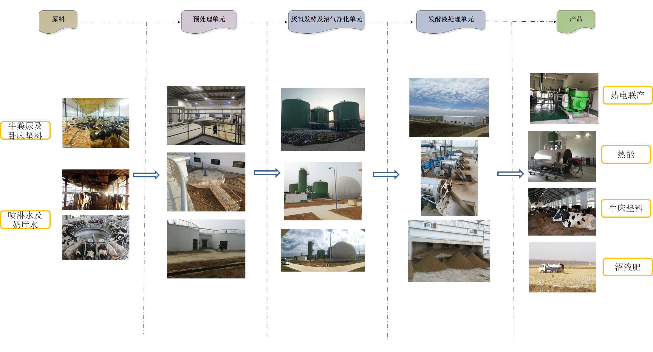優然平陰項目以優然牧業有限責任公司新建萬頭牧場生產的牛糞尿等廢棄物為原料,采用原料預處理+中溫厭氧發酵+三沼綜合利用工藝技術路線,處理工藝主要分為預處理單元、厭氧發酵及沼氣凈化單元和發酵液處理單元。