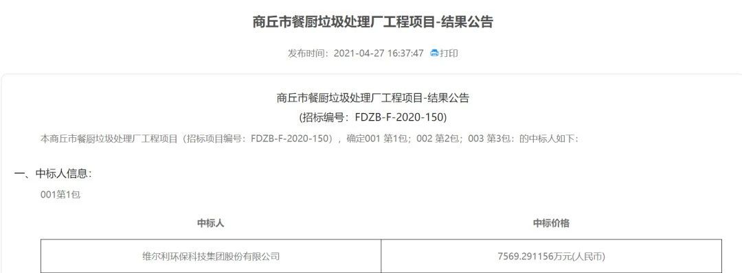 近期,維爾利環(huán)保科技集團(tuán)股份有限公司參與了商丘市餐廚垃圾處理廠工程項(xiàng)目第一標(biāo)段的投標(biāo),成為該項(xiàng)目第一標(biāo)段中標(biāo)人。