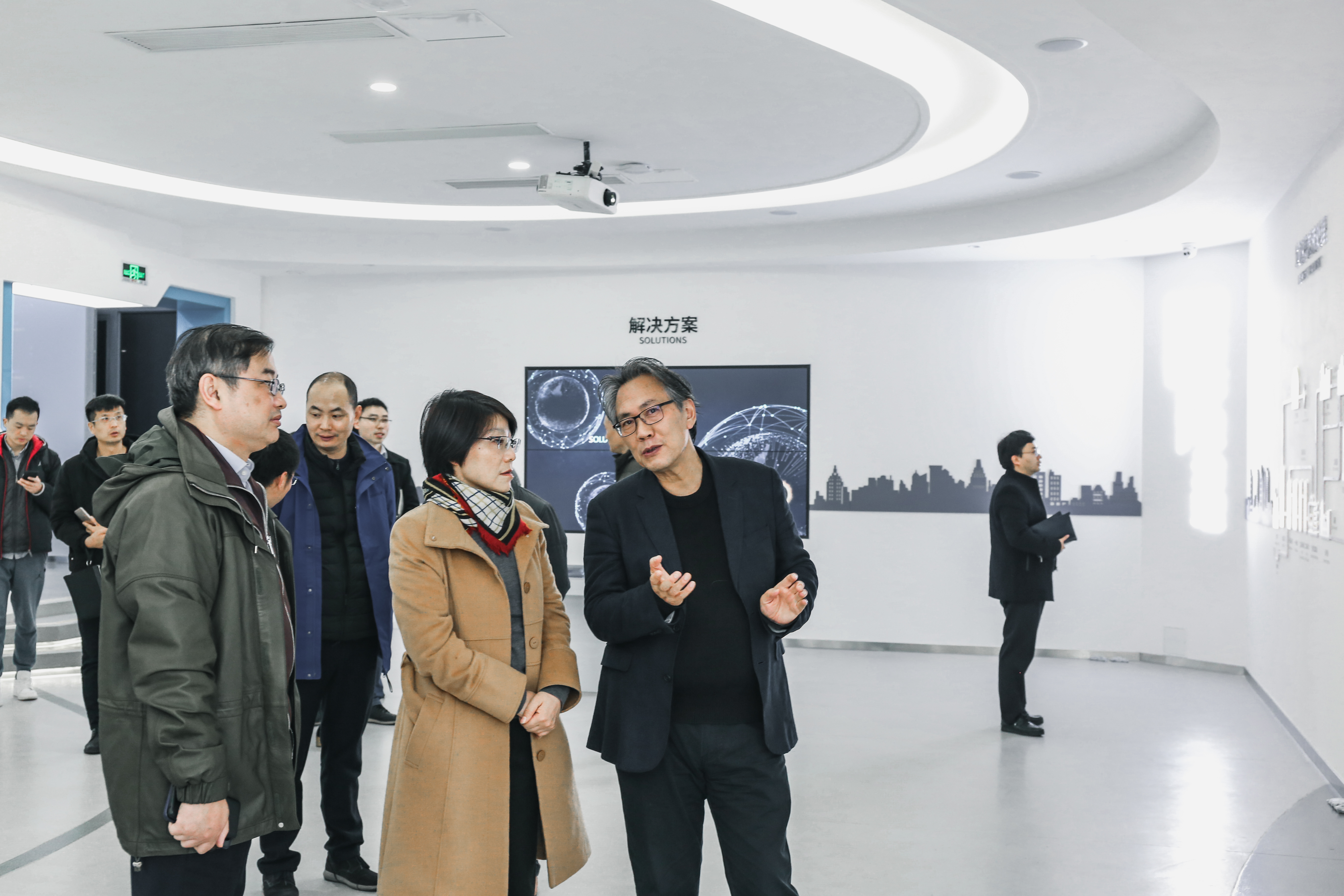 上海城投集團領導一行首先參觀了維爾利集團環保科技展廳、大數據云平臺中心及研發中心,了解了維爾利集團的發展沿革、主營業務及項目案例等內容。集團董事長李月中博士向來賓重點介紹了集團有機廢棄物資源化處理工藝及關鍵核心技術,強調了創新在環保領域的重要作用。